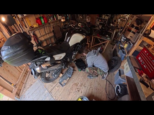 Gatavoju motociklu ziemas miegam. Nomainīju eļļas filtru, izmantoju Valvoline Synpower 4T 10W40 savam Suzuki Vstrom 650, 2012 gada.